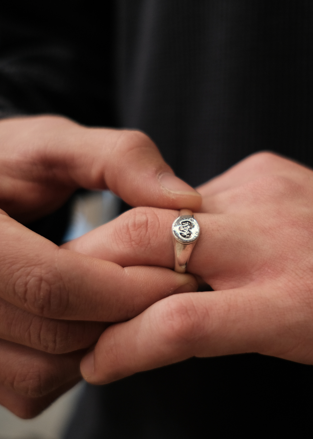 רגליים נוגעות באדמה והקרניים שמהוות הגנה, טבעת קטנה עם הרבה נוכחות ושקט. ראם סילבר טונה סטייל